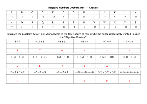 Negative Numbers Codebreakers Teaching Resources