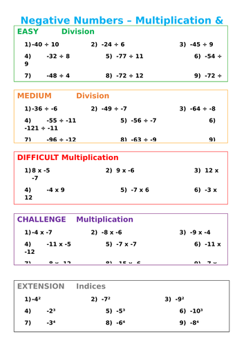 Negative Numbers With Multiplication Division Differentiated Teaching Resources